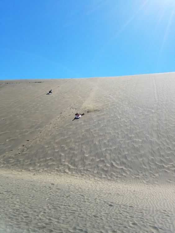 Da der Nachmittag frei war, beschlossen wir, zu einem See zu fahren, der von riesigen Sanddünen begrenzt ist, die das Wasser eines Bachs aufstauen. Da sie selbst noch nie dort war, beschloss Sally, uns zu begleiten. Wir fanden heraus, dass die riesigen Dünen ein beliebter Ort für Teenager sind, um auf Boogie-Boards im Sand zu "surfen", also mussten wir bekleidet bleiben, bis wir halb um den See herum kamen, wo wir ein nacktes Bad genossen.