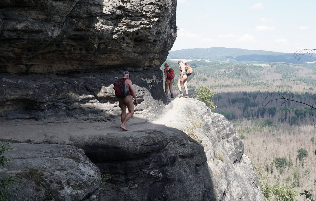 Mit dem Sonntag endete die viertägige Reihe von Nacktwanderungen, in deren Verlauf die Wandergruppe ehemalige Rückzugsorte von Raubrittern im 15. Jahrhundert kennen lernte. Martin hatte jeweils am Abend zuvor Erkenntnisse über sie und ihre Verbindungen zur böhmischen Adelsfamilie der Berken von Dubá erläutert.