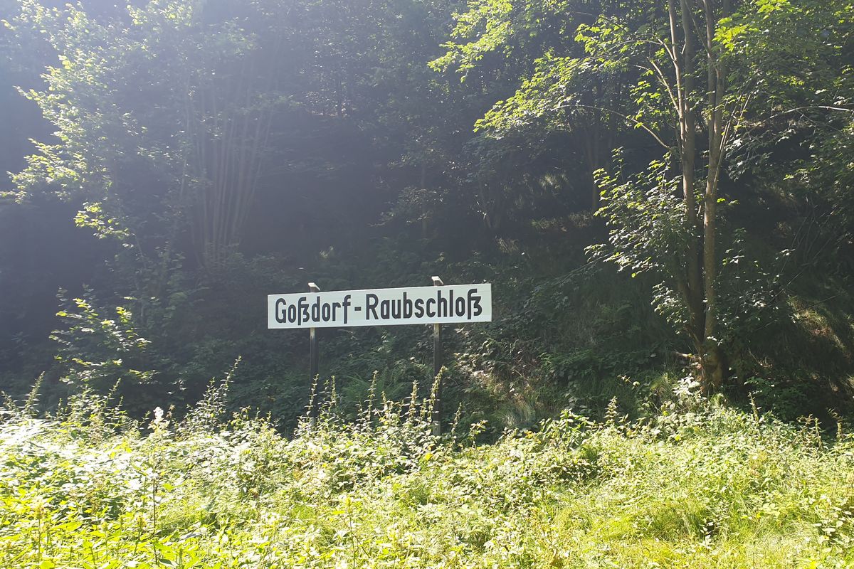 Regen begleitete den Aufstieg zum »Winterstein«, der auch »Hinteres Raubschloss« genannt wird. Dort fanden wir in einer Höhle einen trockenen Rastplatz mit Aussicht. In der Höhle kamen wir mit einigen jungen Leuten ins Gespräch, die dort nach dem Aufstieg mit Kleidung und Regenschutz versuchten, wieder trocken zu werden. »Ja, ihr macht das richtig. Wir würden ja am liebsten auch nackt wandern, aber wir haben keinen Platz, um die Kleidung zu verstauen.« Textilträger halt: Wenn es ums Nacktwandern geht, sind sie um keine Ausrede verlegen.
