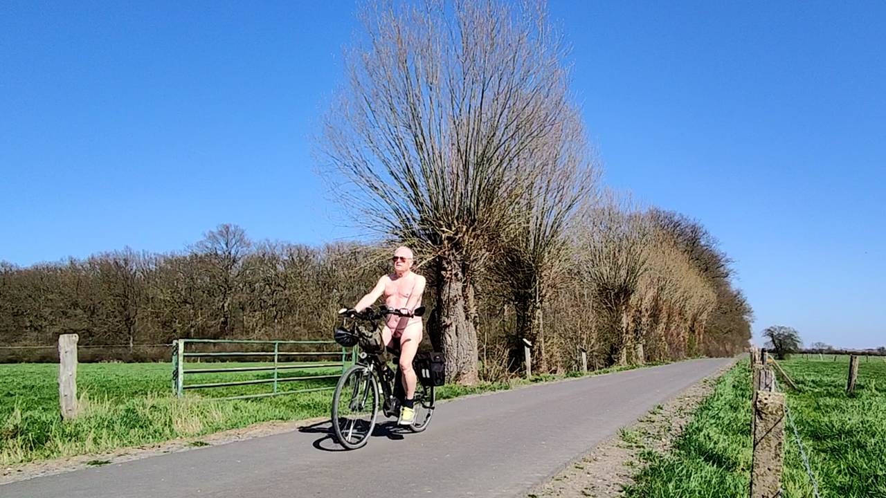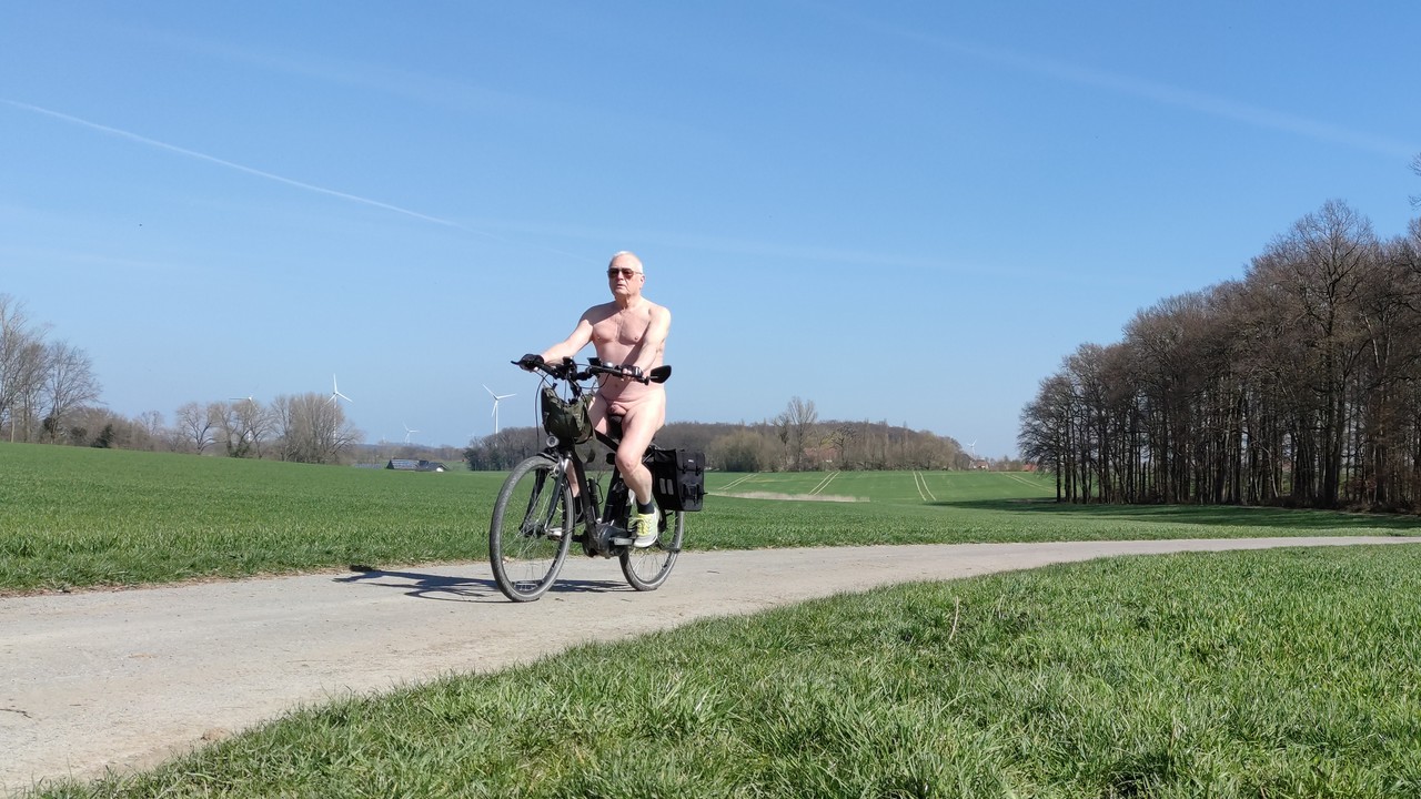 1/3: Eine kleine Nacktradelgruppe im Münsterland