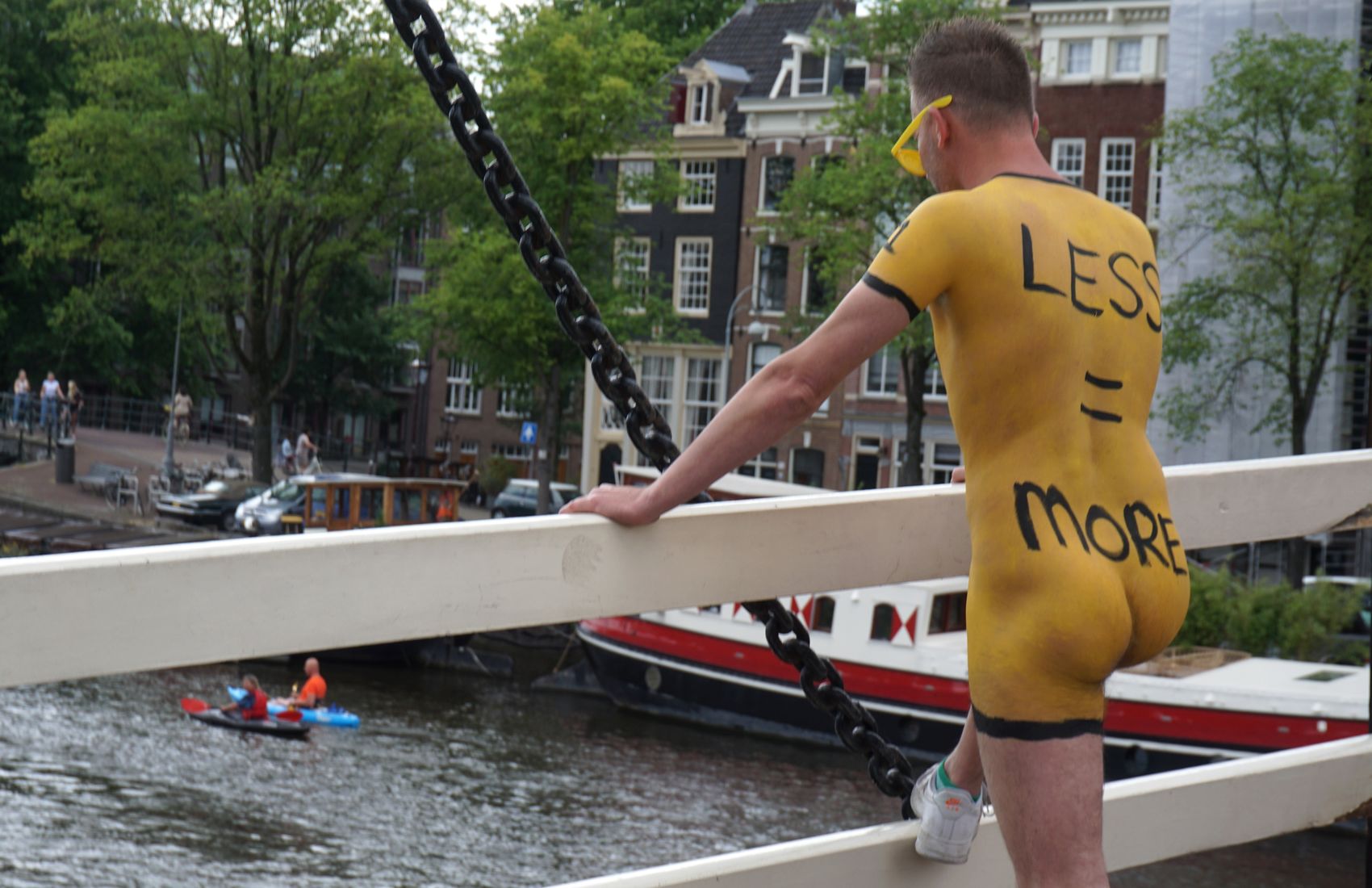 Die Initiatoren hatten als Aufpasser und Verkehrsregler diesmal die Polizei gebeten, die Demo zu begleiten, nachdem 2019 der WNBR Amsterdam ausfallen musste, weil der zertifizierte Guide erkrankt war - denn mindestens einer der begleitenden Verkehrshelfer muss entsprechend ausgebildet und zertifiziert sein.