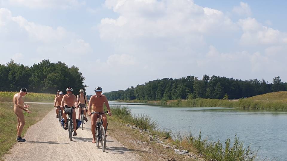 Am Dortmund-Ems-Kanal nahe dem Venner Moor machten wir Mittagspause. Kurze Zeit später trafen auch die nackten Radler ein. Friedhelms Ehefrau Carola radelte bekleidet mit - auch sie wollte in unserer Gemeinschaft mit dabei sein. Birgit, die Ehefrau von Thomas, gönnte sich einen Ruhetag. Heide und Helmut machten eine Auszeit bis einschließlich Samstag - sie wollen am Sonntag wieder mitwandern.