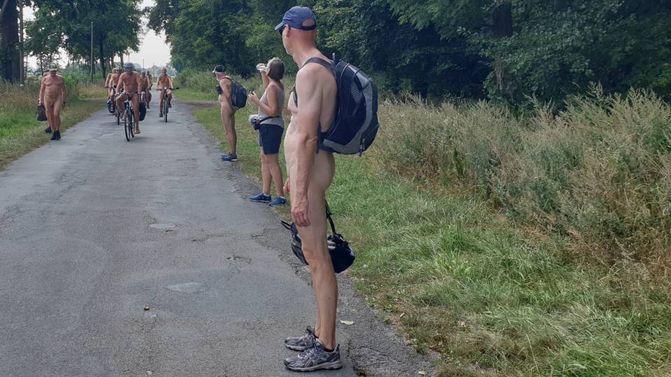 während der ersten WNT 2016 per eMail die zuständige Polizei informiert hätten, jedoch die zuständigen Leitstellen diese Nachricht nicht weitergeleitet hätten. Er antwortete uns, dass Nacktwandern etc. inzwischen so normal sei, dass es gar nicht erforderlich sei, die Polizei vorab darüber zu benachrichtigen. Unser entspanntes Gespräch nahe dem Polizeifahrzeug unterbrachen wir ab und zu, um radelnden Menschen sicheres Vorbeifahren zwischen Polizeifahrzeug und uns zu ermöglichen.