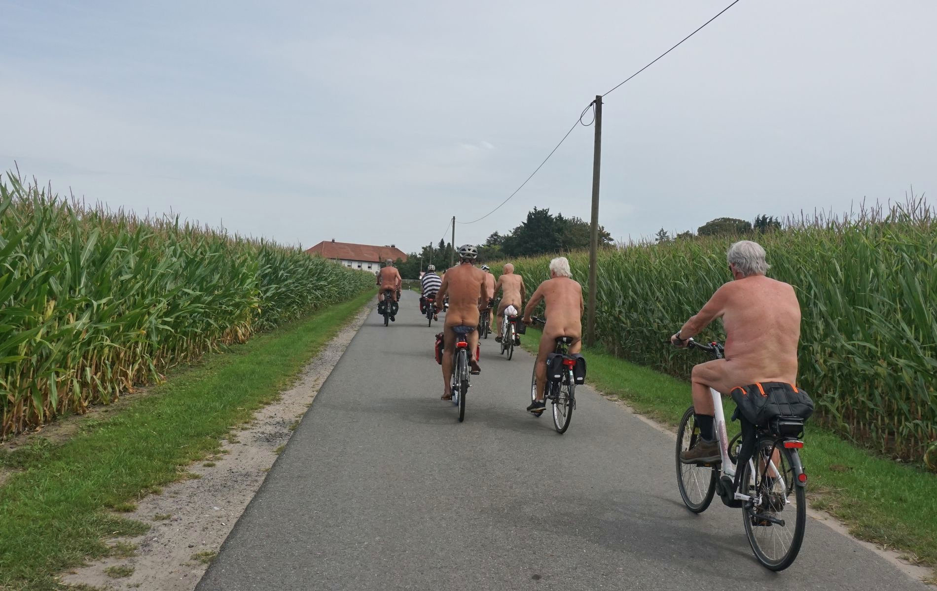 Zwischen Nordwalde und Emsdetten führte die Radelroute über rund 50 km, auf die sich achtzehn Naturisten freuten. Nur zeitweise durch Wolken gefilterter Sonnenschein und Temperaturen zwischen 23 und 26 Grad förderten das Wohlbefinden durch beständigen Fahrtwind, aber auch die Notwendigkeit einer Beschichtung mit Sonnenschutz.