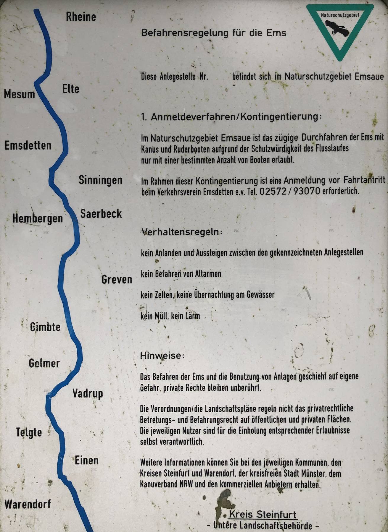 Am Freitag der WNT-Aktivitäten dieses Jahres wurde eine Kanufahrt auf der Ems angeboten. Eine reizvolle Angelegenheit, dachten meine Frau und ich. Die Anmeldung erfolgte nach kurzer Überlegung, schließlich barg die Idee, einmal nackt in einem Kanu über den Fluss zu gleiten, viel Reiz. Eine Landschaft mal vom Wasser aus zu erkunden ergibt nochmal andere Sichtweisen, zumal die Strecke sich durch ein Naturschutzgebiet erstreckte.