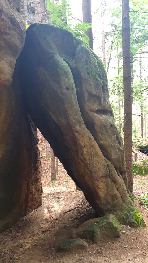 Der Regen entwickelte sich nach und nach zurück und machte ersten Sonnenstrahlen Platz. Im Laufe des Nachmittags gewann die Sonne dann die Oberhand. Wir passierten noch die »Marienhöhle« und stiegen dann zum »Bärfangkegel« auf. Entlang des Bergkamms boten sich weitere Aussichten auf benachbarte Steinformationen.