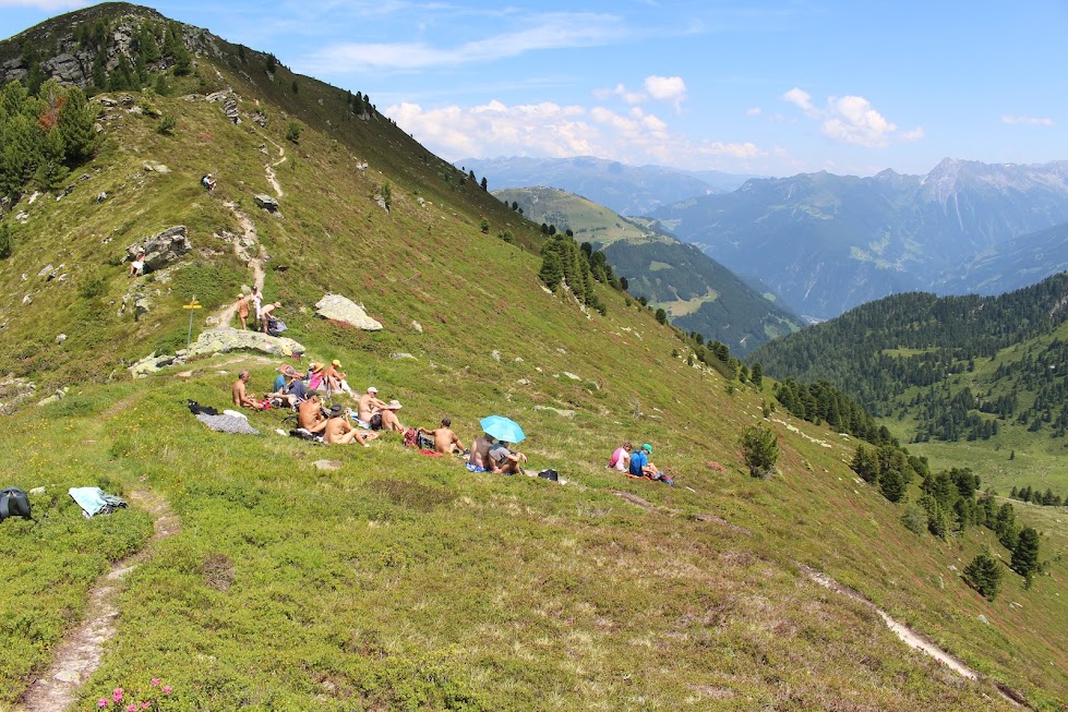 Naked European Walking Tours (NEWT) 2024. Wie jedes Jahr fanden die Naked European Walking Tours in Österreich statt, diesmal vom Sonntag, 7. Juli, bis Sonntag, 14. Juli 2024. 45 Teilnehmer aus 12 Ländern konnten 6 Tage lang in den Tiroler Alpen im Zillertal wandern.