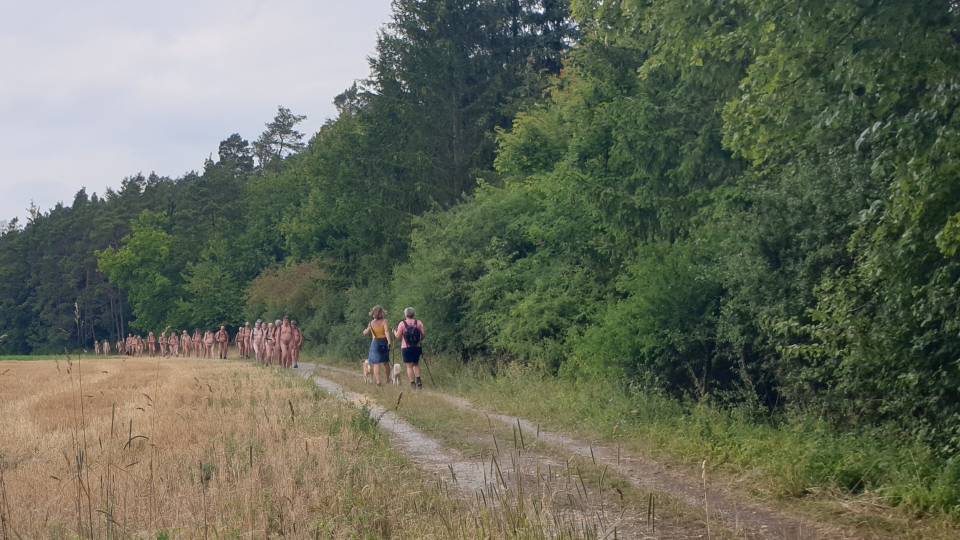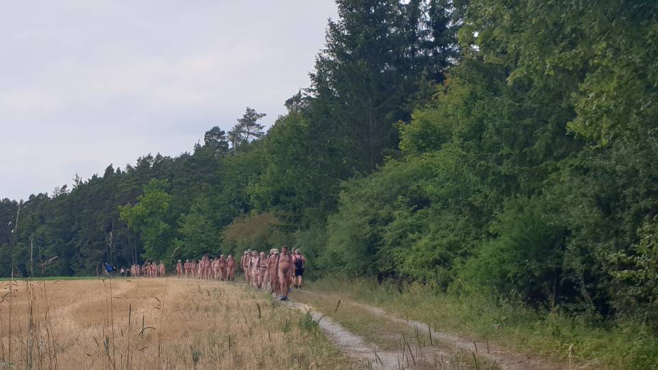 Die Teilnehmer des Events waren Naturisten aus verschieden Regionen in Deutschland, aus Belgien und aus Frankreich. Einige Mitwanderer beeindruckten mich, dass sie trotz des hohen Tempos der Wandergruppe auch über Schotter barfuß mithielten. Das kann ich zwar prinzipiell auch, aber nicht auf derart langen Schotterstrecken - und schon gar nicht in dem Tempo. - Rainer