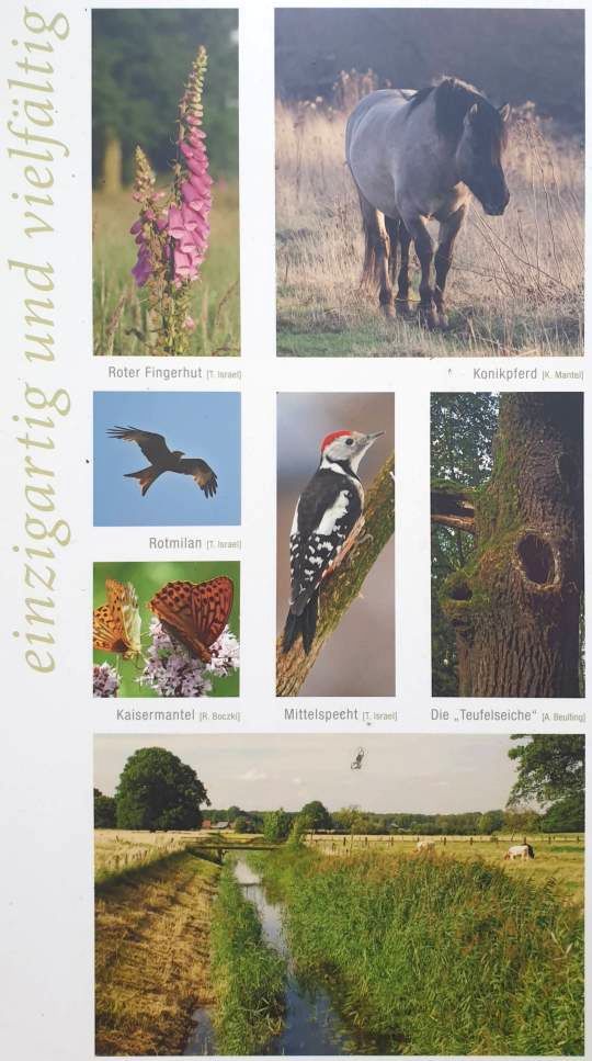 Wir beendeten unsere Wanderung, grüßten Passanten und stiegen in unsere Fahrzeuge. Luit fuhr hinter mir her, um seine wartende Freundin abzuholen. Zusammen fuhren wir über Landstraßen durch Bauerschaften in den Landkreisen Recklinghausen und Coesfeld Richtung Lavesum und von dort zwischen ehemaligem Militär-Übungsgelände und A43 zum Restaurant „Haus Waldfrieden“ bei Merfeld / Dülmen. Luits Freundin spricht außer Niederländisch besser Englisch als Deutsch und fragte mich, woher ich so flüssig Englisch spreche. Ich erklärte ihr mein häufiges Mitwirken an https://natury.info und die damit verbundene Involvierung von Muttersprachlern: