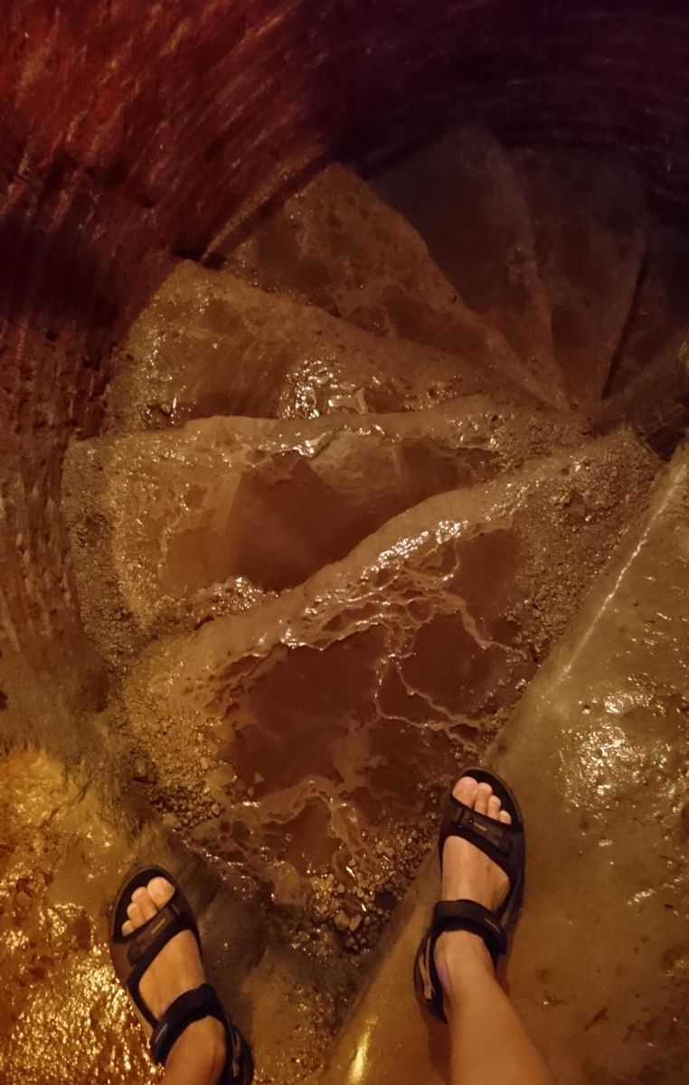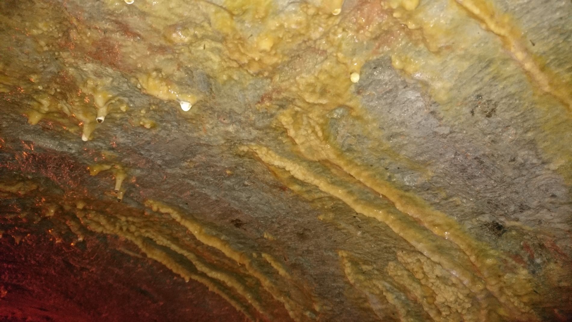 Wir begannen unsere Führung und lernten viel über historische Produktionsmethoden. Anfangs war es noch 15°C warm, weiter unten sank die Temperatur auf 10°C. Wer wollte, ging auch barfuß durch die Pfützen. Der untere Bereich ist ein Refugium für die Überwinterung verschiedener Fledermaus-Arten und daher vom 1. Oktober bis 1. Mai komplett abgeriegelt, um die Tiere nicht zu stören.