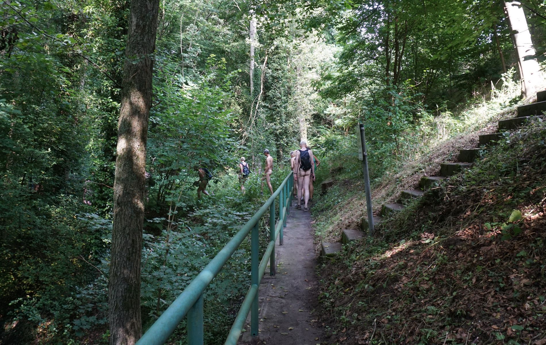 Sonntag 20.8.2023, zweiter Tag der diesjährigen WNT: Die Sonne scheint, die Stimmung ist gut, und es sind 52 Teilnehmer angereist - davon 8 Frauen. Super, so viele waren wir noch nie! Mehrere von ihnen sind Neulinge. Drei von ihnen erzählen später, dass sie eigentlich erstmal bekleidet mitwandern wollten, um mal zu schauen. Weil sie sich aber sofort wohlgefühlt haben, hätten sie sich spontan entschieden, von Anfang an nackt mitzugehen. Nächstes Jahr wollen sie wieder mitwandern.