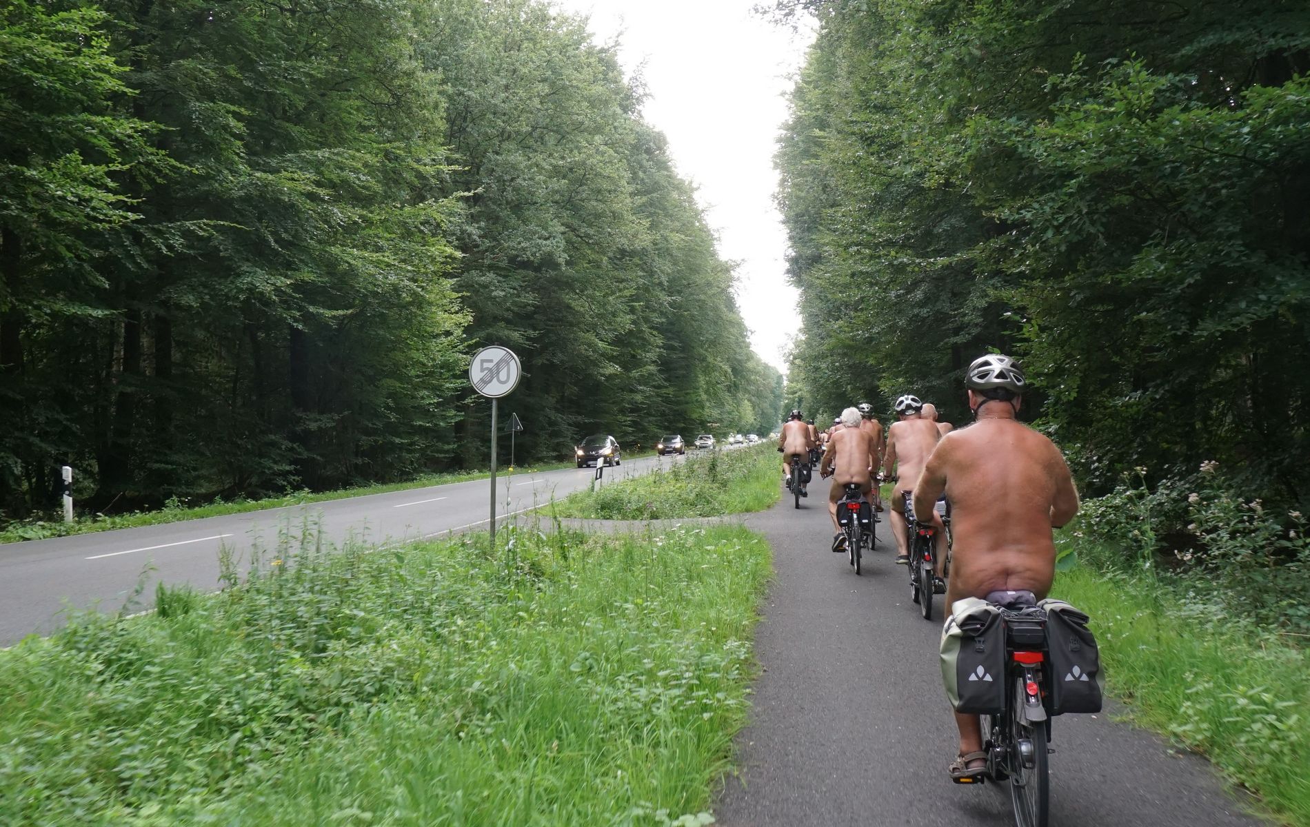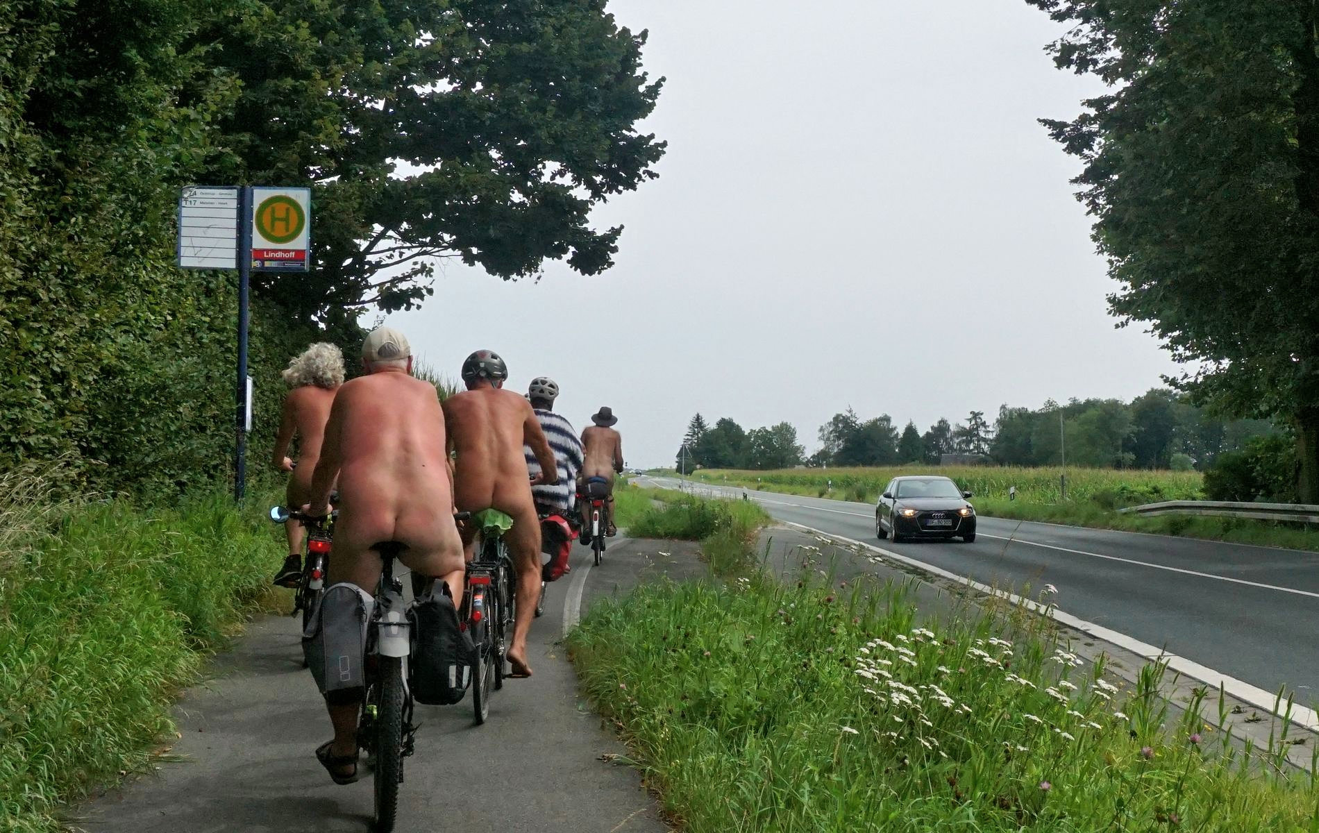Zwischen Nordwalde und Emsdetten führte die Radelroute über rund 50 km, auf die sich achtzehn Naturisten freuten. Nur zeitweise durch Wolken gefilterter Sonnenschein und Temperaturen zwischen 23 und 26 Grad förderten das Wohlbefinden durch beständigen Fahrtwind, aber auch die Notwendigkeit einer Beschichtung mit Sonnenschutz.