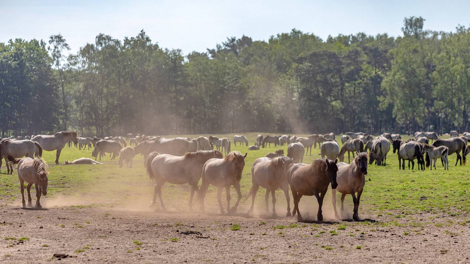 Dabei geht es gar nicht primär darum, das Leben der Pferde zu schützen - auch in freier Natur würde es ja vorkommen, dass etwa ein Fohlen einem Wolfsriss zum Opfer fiele. Wesentlich schwerer wog bei der Entscheidung im Kreistag die Bedrohung durch ausbrechende Wildpferde, wenn ein Teil oder gar die gesamte Herde aufgrund von reißenden Wölfen in Panik geraten und die bisherigen, leichteren Zäune durchbrechen könnten. Dann entstehe eine unmittelbare Gefahr für Menschen, weil eine größere Anzahl von Pferden im Panikgalopp durch bewohnte Gebiete, über Straßen und die nahe Autobahn rasen und Massenunfälle verursachen könnte. Quelle: WDR Lokalzeit Münsterland